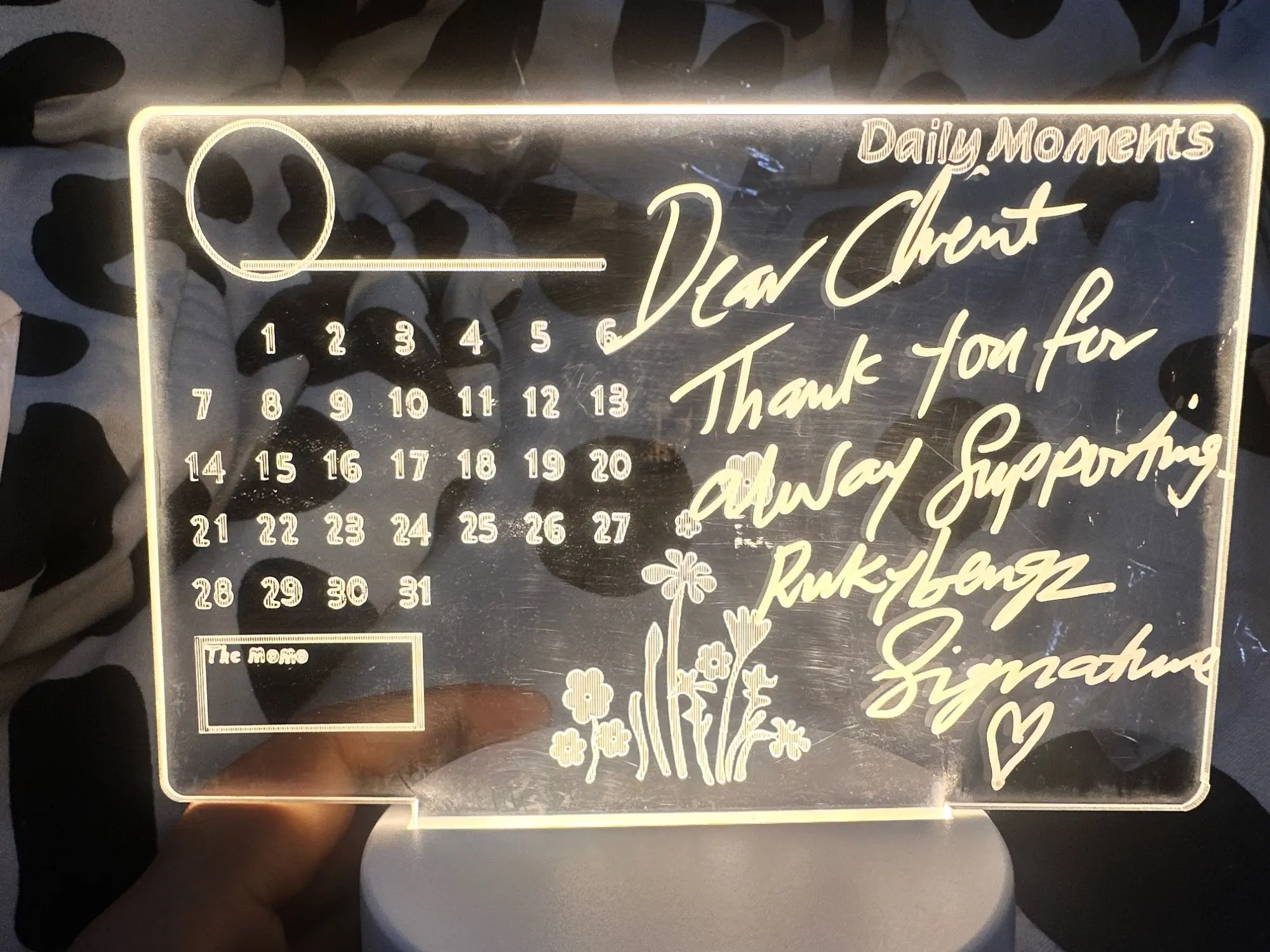 • This board lamp is with a free pen as a gift, you can leave message with this pen.